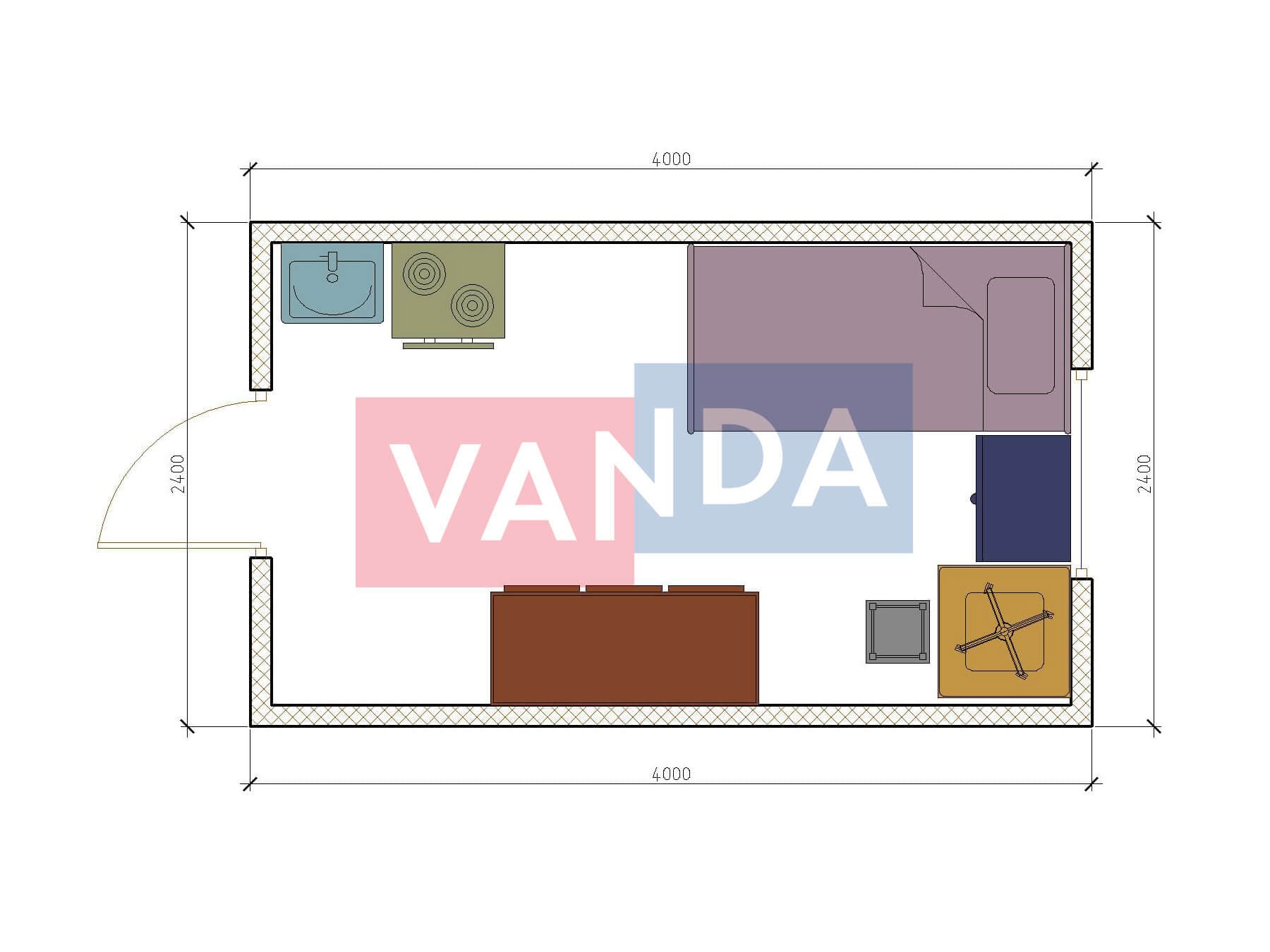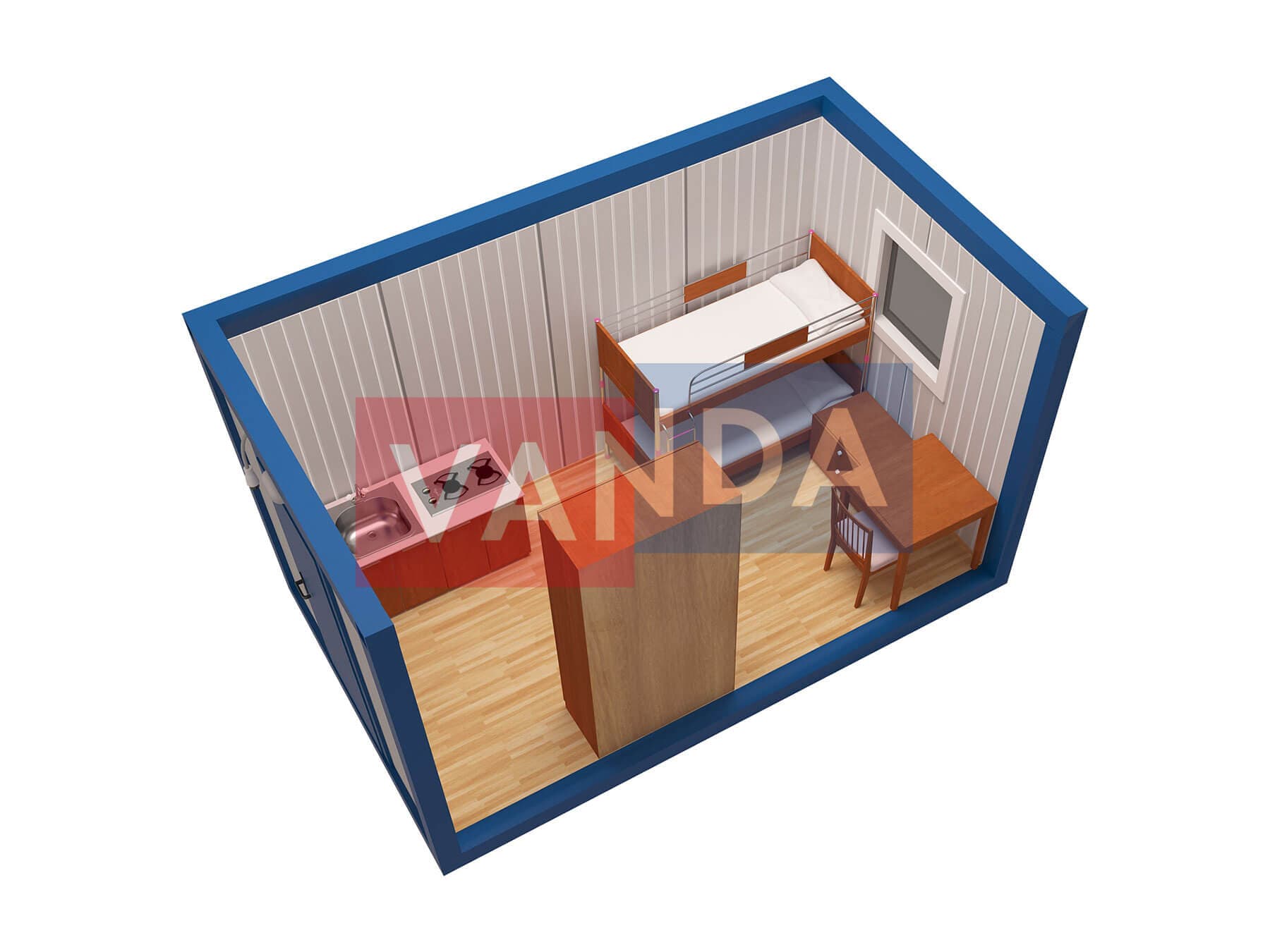 Металлическая бытовка распашонка 5,85 x 2,4 - Оргалит ДВП